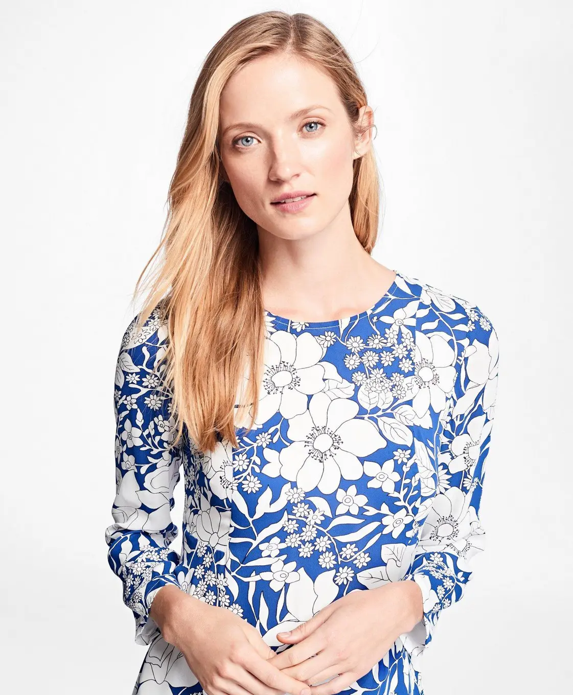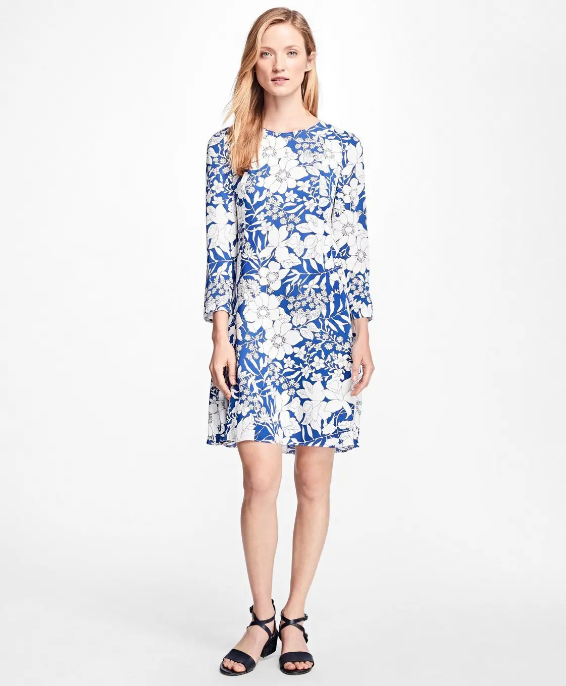 Brooks Brothers Áo Đầm BLS RAYON FLORAL PRNT BLU/IVRY