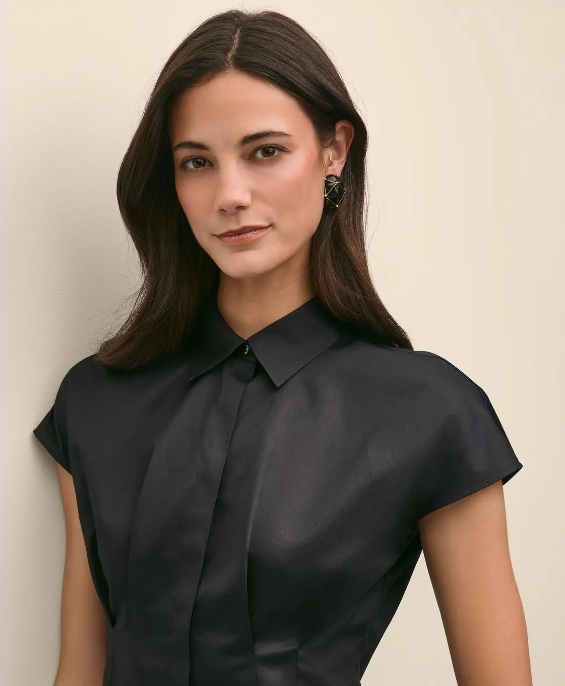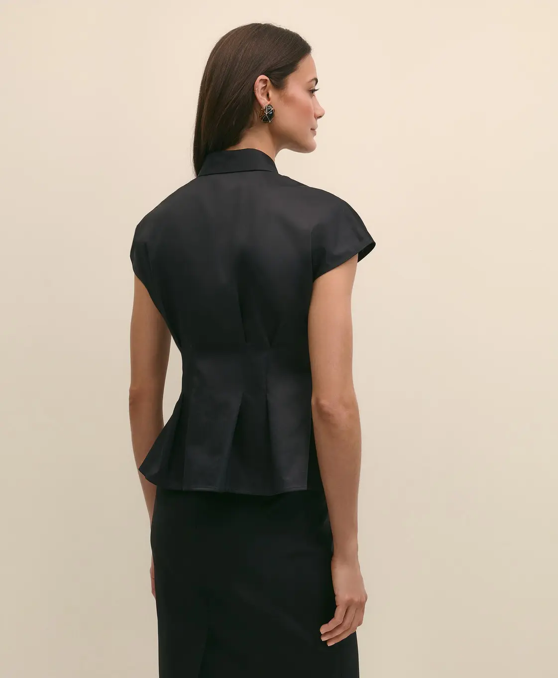 Brooks Brothers Áo kiểu BLS CTN EXT SLV PEPLUM BLACK