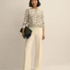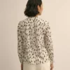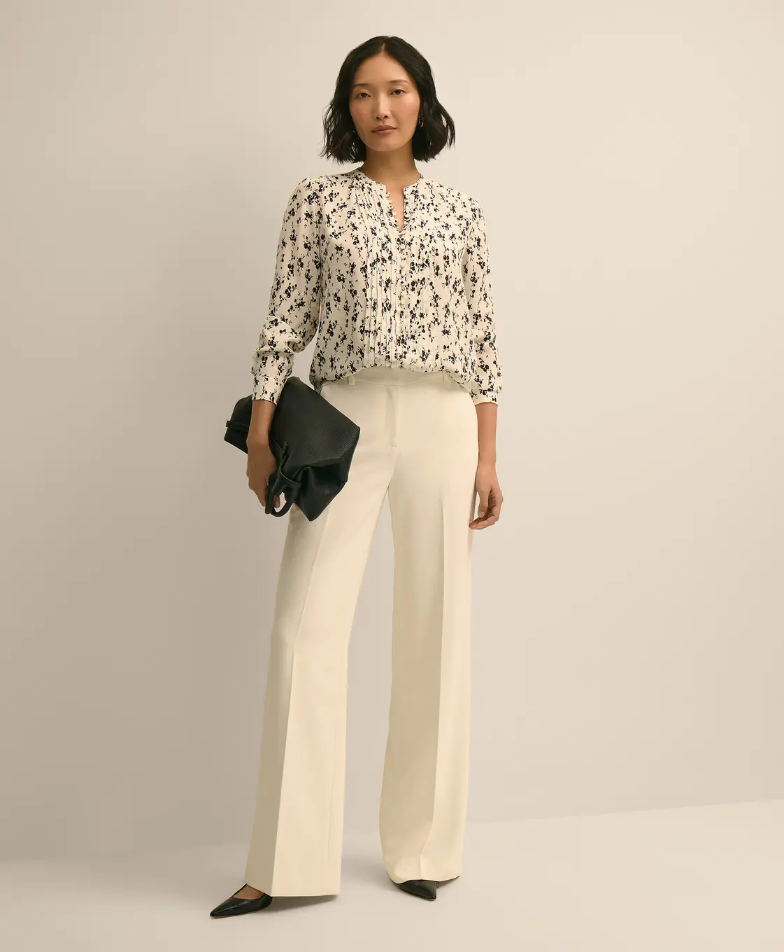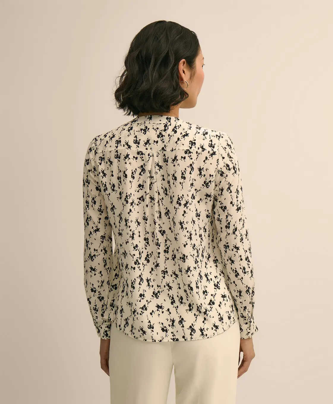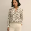 100% Silk. Áo kiểu nữ được làm từ 100% lụa, thiết kế tinh tế với họa tiết hoa, tay áo xếp ly mềm mại, tạo vẻ ngoài nữ tính và nhẹ nhàng.