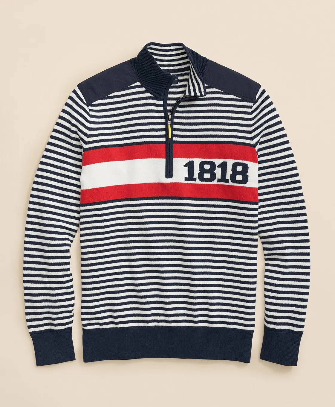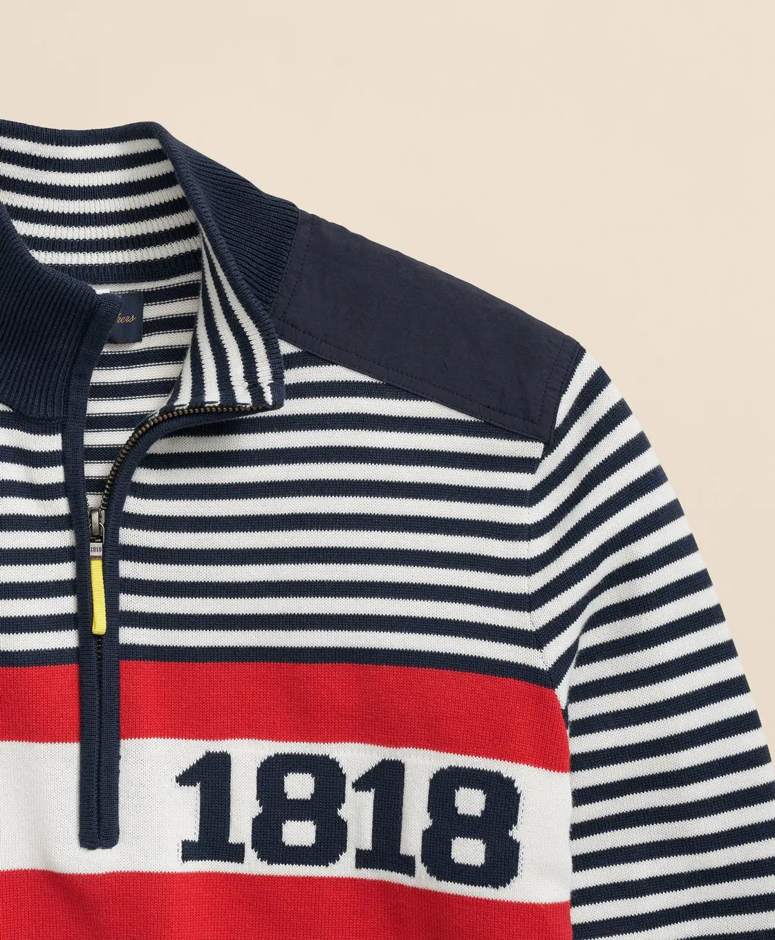 Brooks Brothers Áo Len SWT 1818 HALF ZIP NVYRED STP