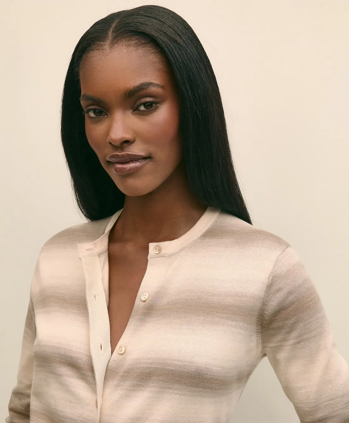 100% Cotton. Được dệt từ 100% cotton Ai Cập, chiếc áo cardigan mang đến hiệu ứng chuyển màu tinh tế trên từng sợi vải. Chiều dài thân áo 24″ mang đến form dáng hiện đại, dễ dàng phối hợp cùng nhiều trang phục.