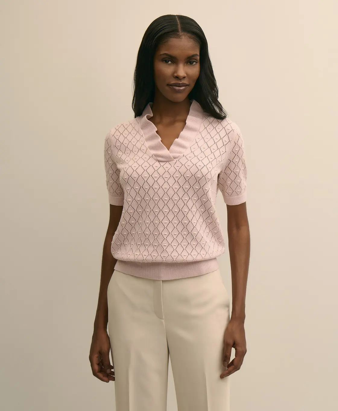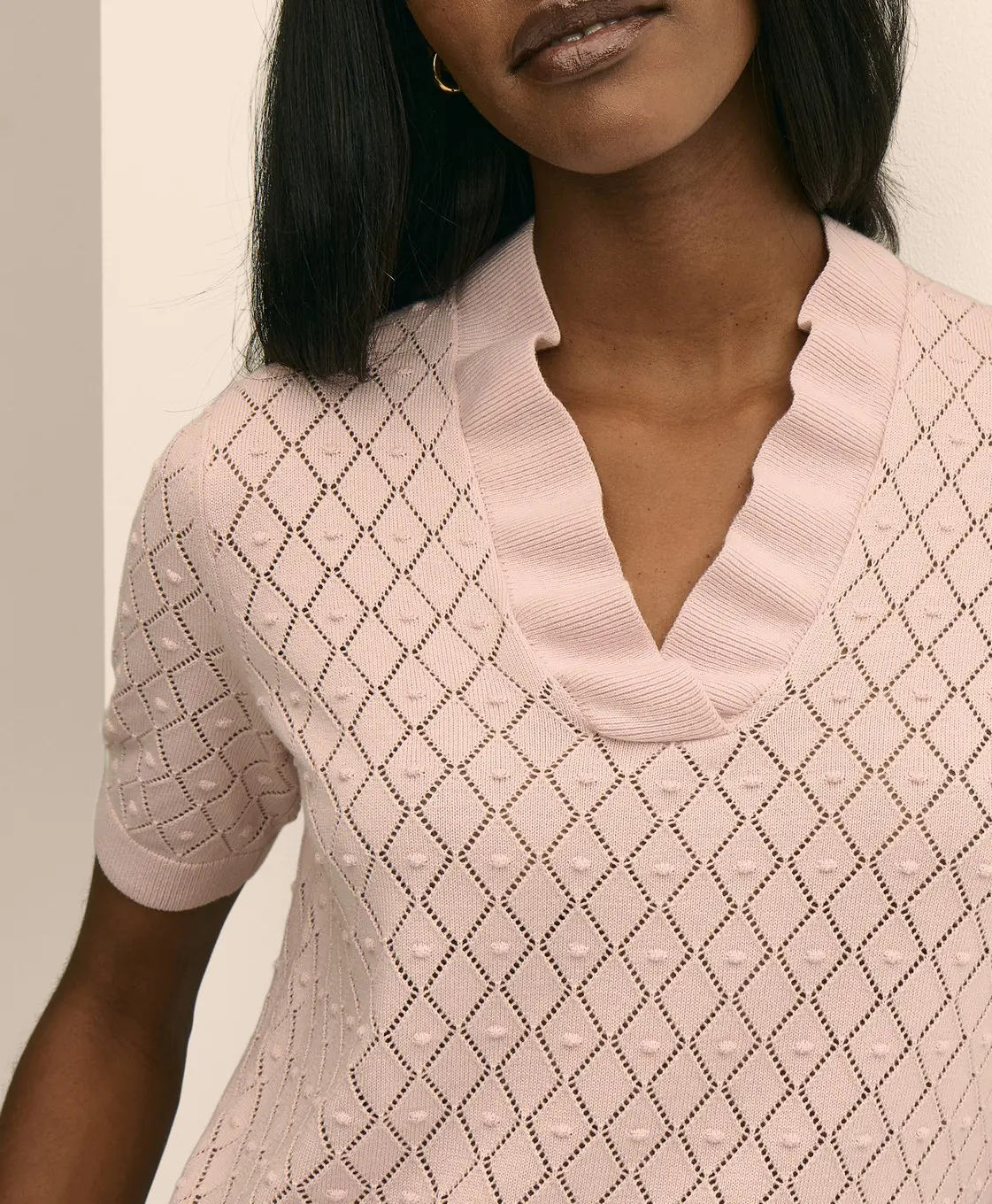 Brooks Brothers Áo Len SWT CTN RFFL SS POINTELLE