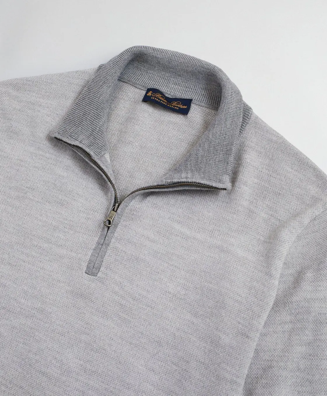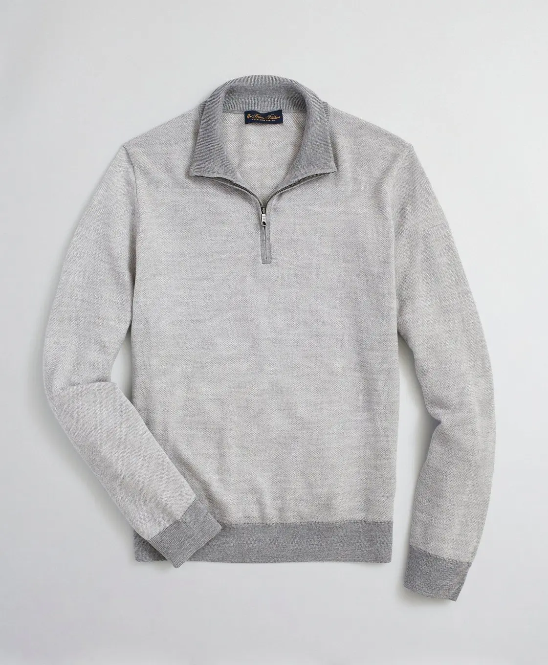 Brooks Brothers Áo Len SWT WL BIRDSEYE HALF ZIP GREY