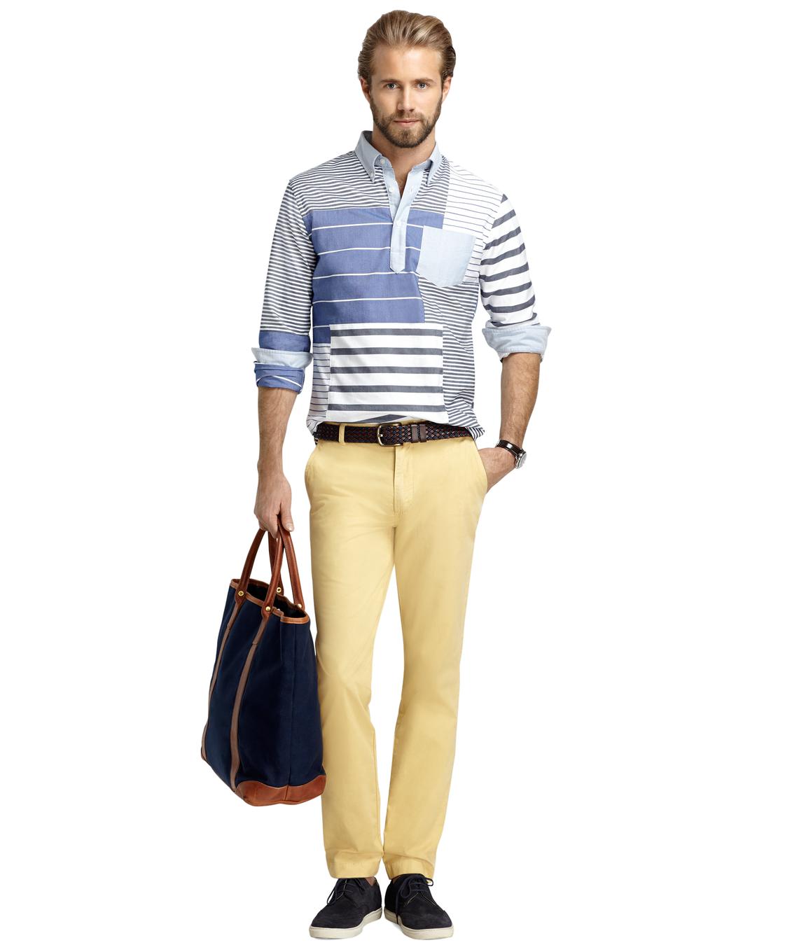 100% Cotton. Quần khaki là một trong những sản phẩm bán chạy nhất của Brooks Brothers. Sản phẩm sản xuất từ chất liệu nhẹ, thoải mái, được xử lý đặc biệt để hạn chế nhăn, mềm mại và giữ màu lâu hơn. Hoàn hảo cho cả những dịp trang trọng và trang phục thường ngày.