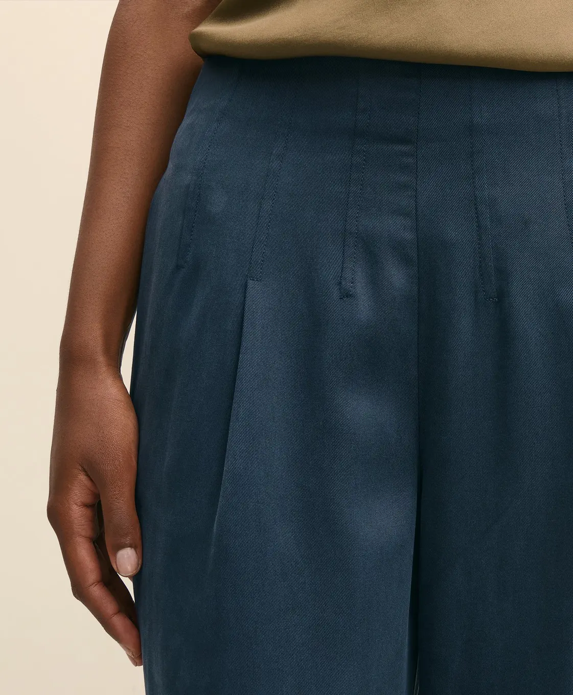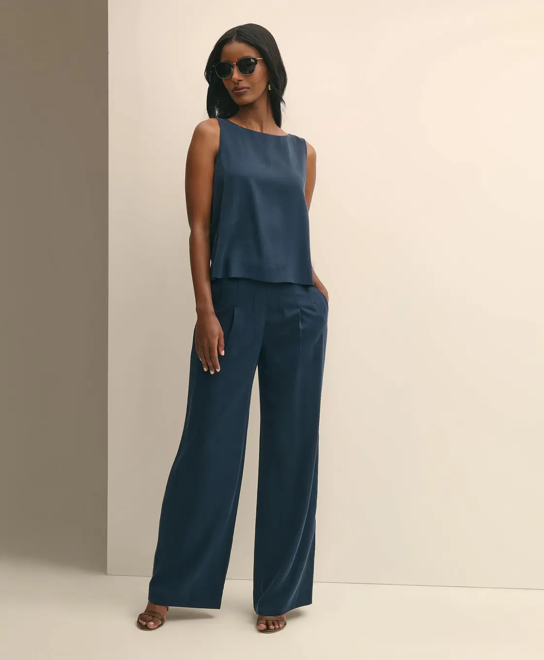 100% Lyocell. Chất liệu mang đến cảm giác mềm mại và rủ nhẹ tự nhiên, đồng thời vẫn giữ được độ đứng dáng thanh lịch.